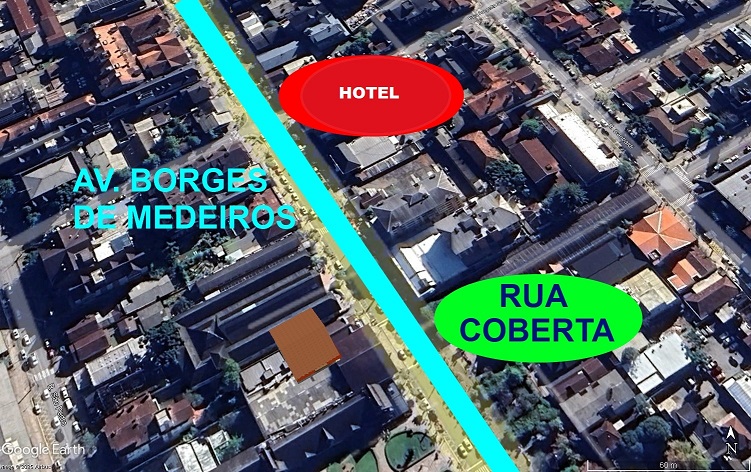 DESCRIÇAO DO IMÓVEL: HOTEL do Condomínio “COMERCIAL JÚLIO CHAUET”, situado à Rua Augusto Zatti, nº 160, com área real total de 1.045,00m², área real privativa de 1.030,46m² e área real de uso comum de 14,54m², o qual corresponde a fração ideal de 0,5384 do terreno. Ocupa o pavimento térreo, excetuando-se as áreas das Lojas 01, 02, 03, com acesso exclusivo pela Rua Augusto Zatti nº 160 e integralmente o 1º e 2º pavimento da edificação. Os terraços, existentes sobre a Loja 01, são de propriedade e utilização exclusiva do Hotel. O terreno onde assenta a construção possui a área de quinhentos e sessenta e dois metros e cinquenta decímetros quadrados (562,50m²), situado na zona urbana desta cidade, bairro Centro, medindo doze metros e cinquenta centímetros (12,50m) frente, a Oeste, com a Avenida Borges de Medeiros; tendo a largura de doze metros e cinquenta centímetros (12,50m) nos fundos, a Leste, onde entesta com terreno que é ou foi de Sadi Nejar; dividindo-se por um lado, na extensão de quarenta e cinco metros (45,00m) da frente aos fundos, ao Sul, com terreno que é ou foi de Sadi Nejar; e pelo outro lado, na extensão de quarenta e cinco metros (45,00m) da frente aos fundos, com o alinhamento da Rua Augusto Zatti; situado na esquina da Avenida Borges de Medeiros com a Rua Augusto Zatti; localizado dentro do quarteirão formado pela Avenida Borges de Medeiros e Ruas Augusto Zatti, Garibaldi e Madre Verônica.